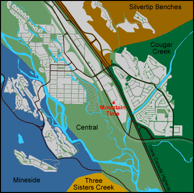 you will see Falcon Crest Lodge on the corner of Bow Valley Trail and